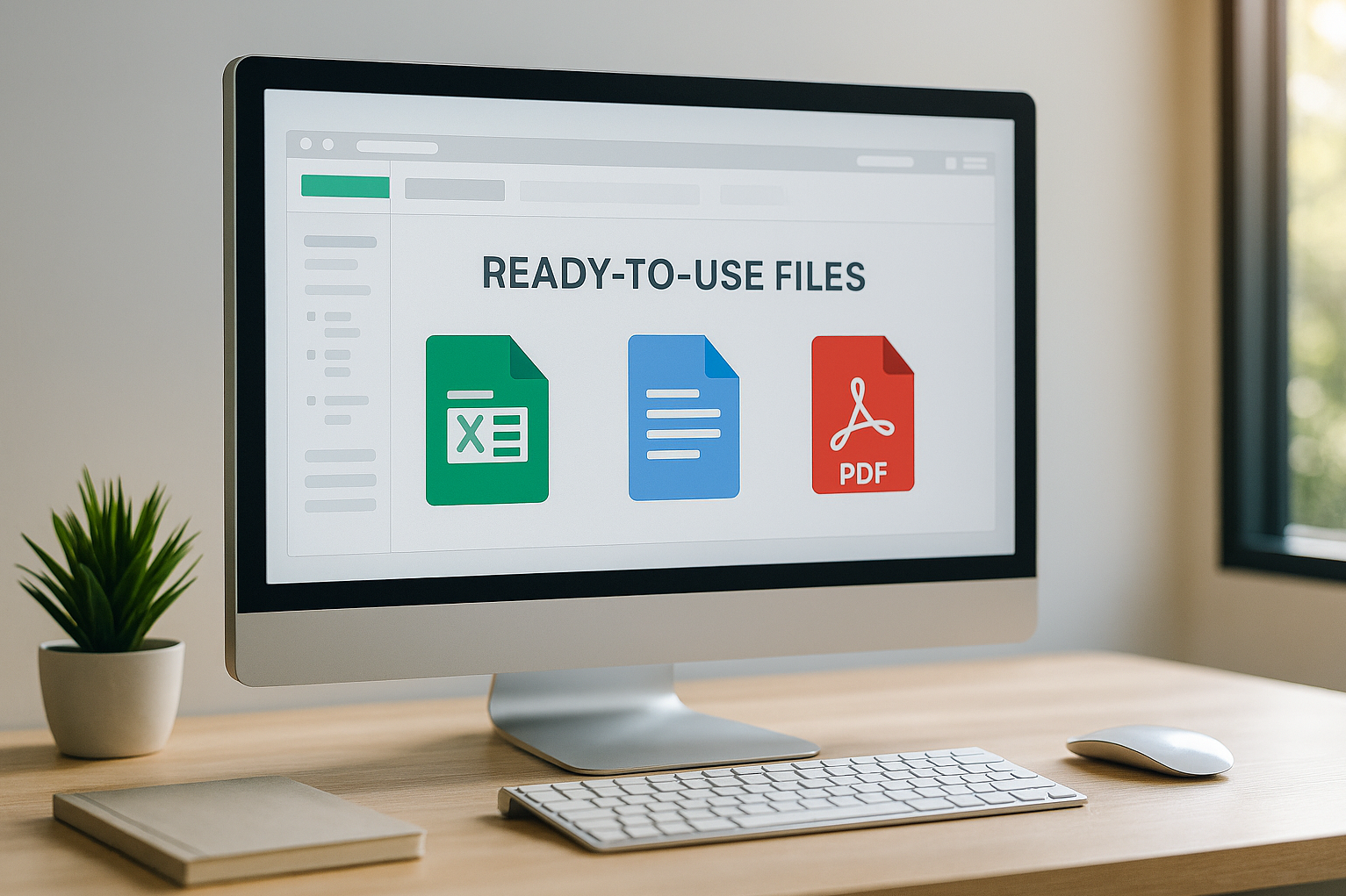 Je mets à votre disposition des fichiers — tableurs, tableaux de bord, documents, et plus encore — conçus pour faciliter la gestion de votre quotidien.